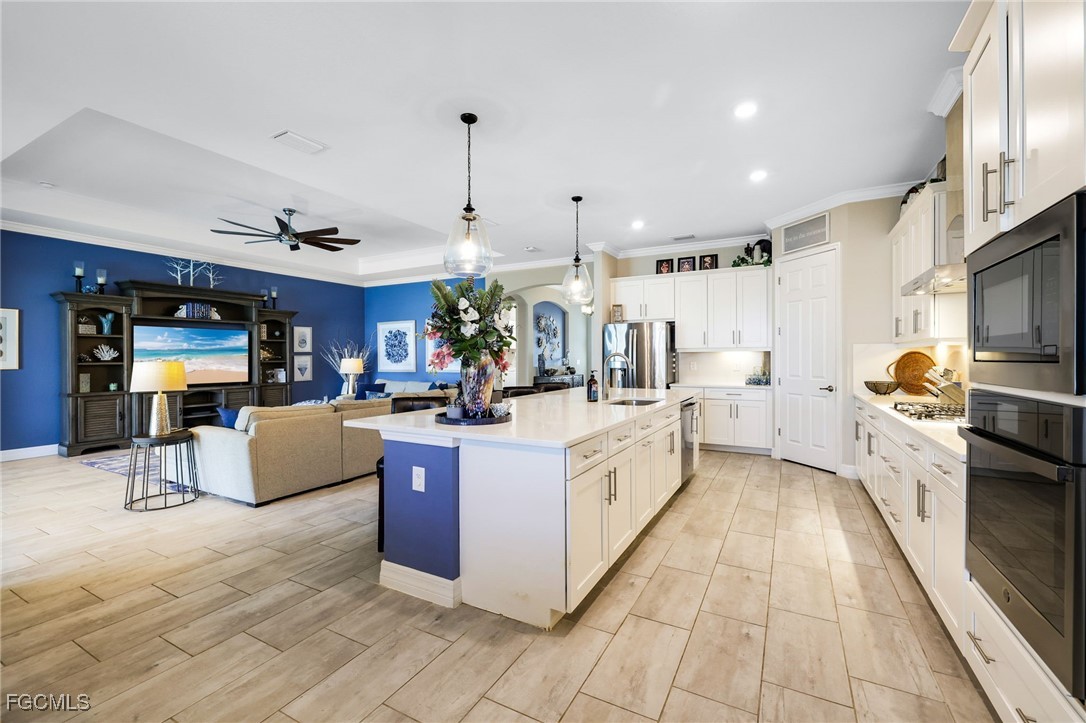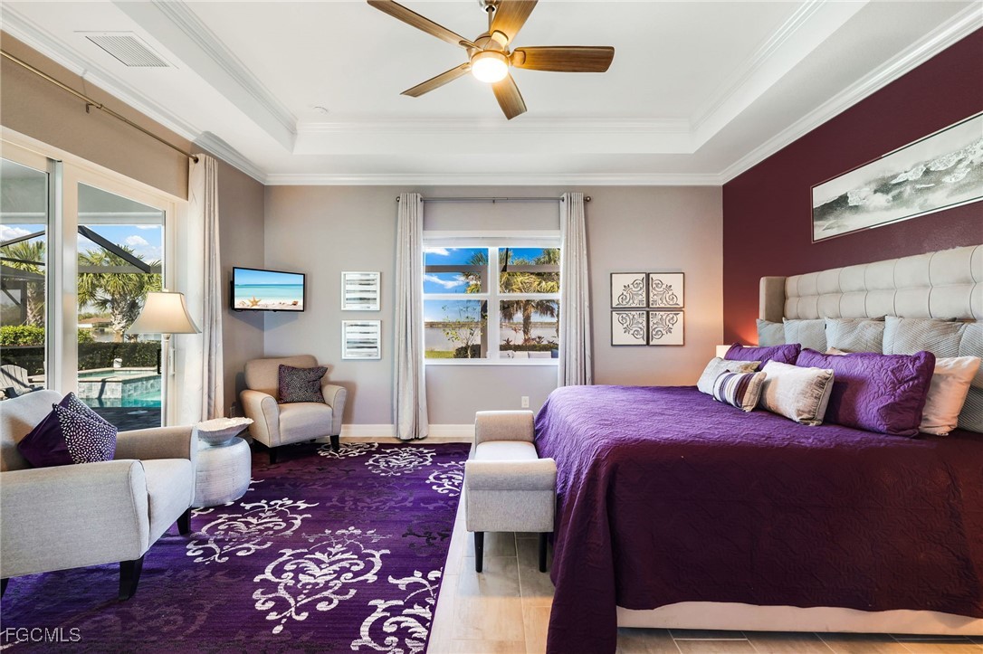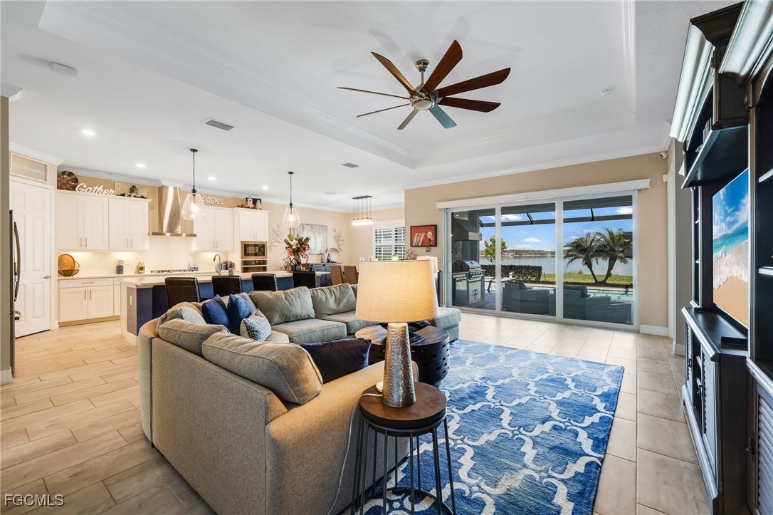 BREATHTAKING MILE-LONG LAKE VIEW! Discover 13424 Blue Bay Circle, an extensively upgraded and FULLY FURNISHED Summerville floor plan. This best-selling model features a 3-bedroom plus den, 3-bathroom, open concept layout, encompassing 2,445 square feet of luxurious living space. The spacious island kitchen boasts elegant white shaker-style cabinets, stainless steel appliances, a gas cooktop, and premium quartz countertops with matching backsplash, seamlessly connecting to the dining area, family room, and outdoor living space. The master suite is adorned with large windows and sliding glass doors, inviting ample natural light and providing direct access to the pool and lanai. Venture outside to your personal oasis featuring a fully equipped outdoor kitchen, heated pool, waterfall spa, and 50 feet of screened deck space overlooking the longest (one mile!) and widest sections of the 225-acre recreational Lake Vista. This lot allows for construction of a custom dock on the lake, perfect for boating, watersports, and fishing enthusiasts! The air conditioned three-car garage accommodates multiple vehicles, a golf cart, a boat and/or trailer, with ample storage space. Enjoy total peace of mind with hurricane impact windows and doors, a whole-home automatic generator, and rolldown storm screens on the back lanai. WildBlue's amenity peninsula provides panoramic views of the 435-acre WildBlue Lake, featuring a resort-style pool, separate lap pool, sandy lakeside beach, fitness center with studios, locker rooms with saunas, spa, a full-service restaurant and bar, poolside bar and grill, tennis and pickleball courts, a pro shop, basketball, boat ramps to over 800 acres of freshwater lakes, boat slip rentals, kayak storage, and more. Don't miss this opportunity, schedule your private tour today.
