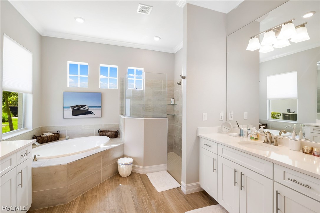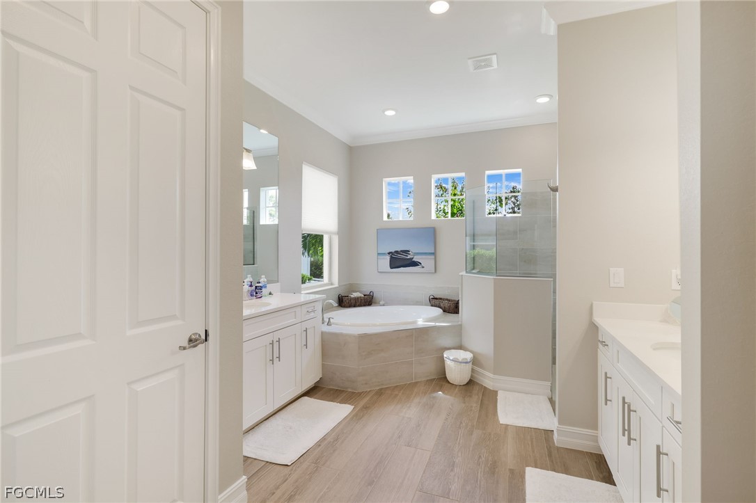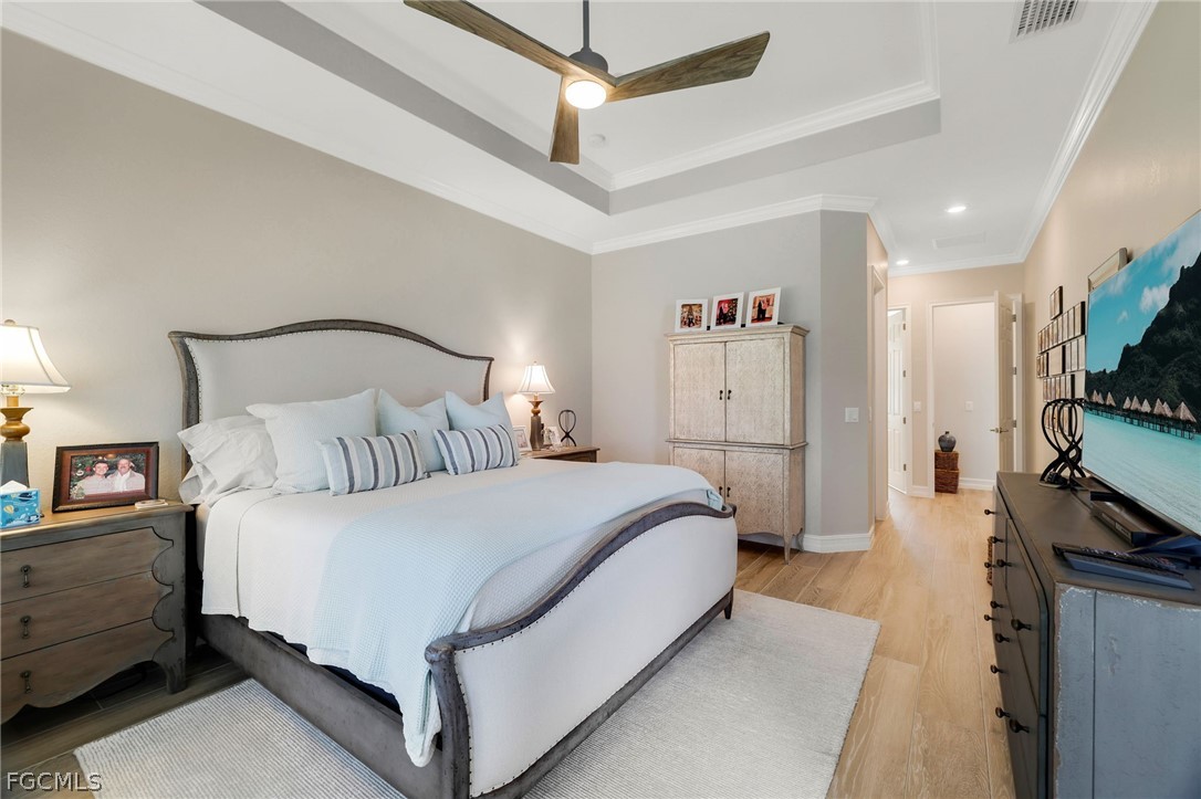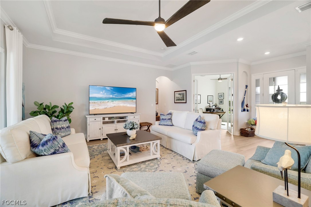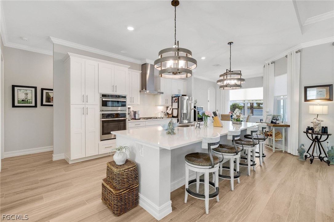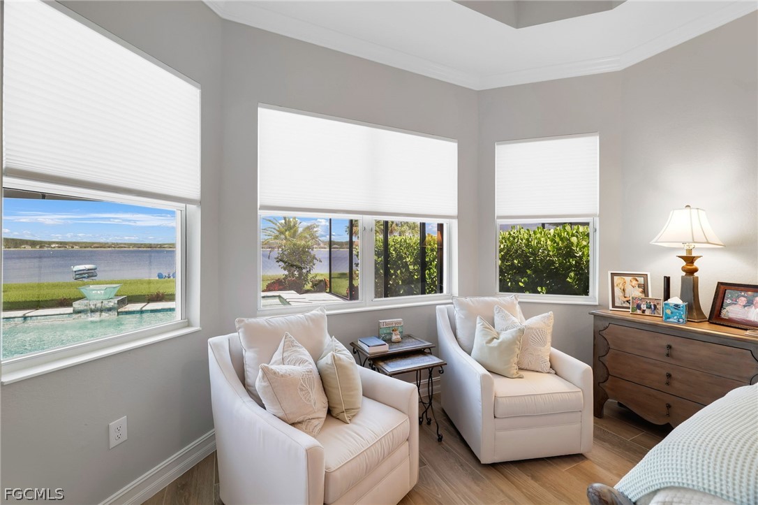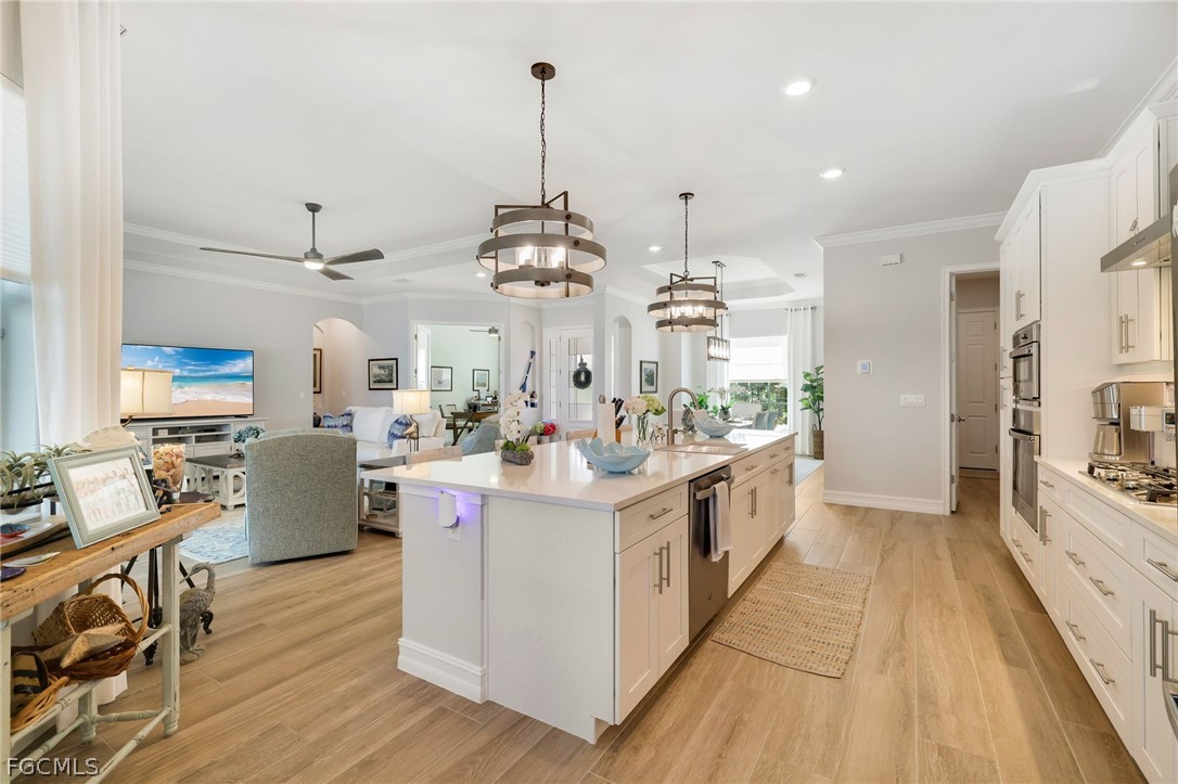 Your lakefront sunset oasis awaits at 13880 Blue Bay Cir! Experience captivating western-facing views over the mile-wide boatable Lake Vista from this stunning open-concept design with three bedrooms plus a den, two and a half bathrooms, and nearly 2400sqft under air. Every inch of this home has been crafted to provide a luxury lake home feel. The second you open the front door you are greeted by an expansive great room, large island kitchen, and massive windows and sliding glass doors looking over the pool and lake. Separate from the rest of the bedrooms, the master suite is a true retreat, with a bedroom, sitting area, walk-in closet, bright and spacious bathroom, and a private door to the lanai. The remarkable outdoor space is complete with an outdoor kitchen, paver deck with a poured concrete base and tons of space for furniture, a custom heated pool and waterfall spa, and a picture window screen cage. Your lot will be the envy of the lake, with mile-wide sunset-facing lake views and no homes across the street for unparalleled privacy. Additional notable upgrades include impact windows and doors, a whole-home generator, Hinckley light fixtures and fans, automatic motorized window shades on the sliding glass doors, custom blinds and draperies, porcelain plank tile throughout the home, shaker style soft close cabinetry, quartz countertops and backsplash, a dock with kayak racks and jet ski floats, and more. WildBlue's amenity peninsula provides panoramic views of WildBlue Lake and features a resort-style pool, separate lap pool, sandy lakeside beach, fitness center with studios, locker rooms with saunas, spa, a full-service restaurant and bar, poolside bar and grill, tennis and pickleball courts, a pro shop, basketball, boat ramps to over 800 acres of freshwater lakes, boat slip rentals, kayak storage, and more. Schedule your private showing today; see you at the lake!