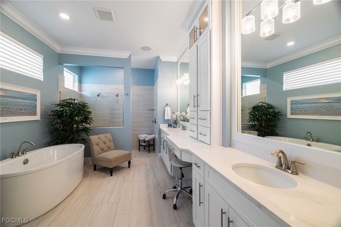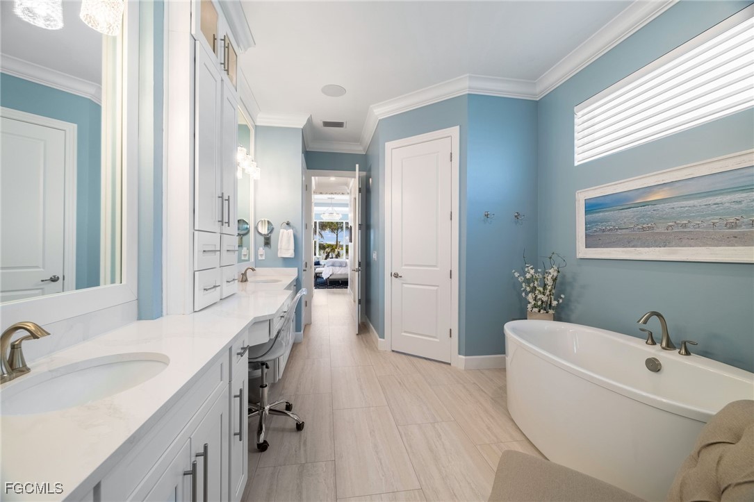 Proudly presenting the Envy of the Lake, 18893 WildBlue Blvd. Constructed by WCI and crafted by meticulous owners, this 1-of-1 Baneberry model has been totally customized, and must be seen to be experienced. All four bedrooms are en-suites with their own full bathrooms attached, with one doubling as a guest bathroom and another as a pool bath. The sprawling 3,178sqft of open-concept living space is completed with porcelain plank tile flooring, with every inch of the home offering tasteful and luxurious upgrades. The great room is the heart of the home, with a formal dining area, breakfast nook, living room, and gourmet kitchen all aligned with sweeping views of the 435-acre boatable WildBlue Lake. The master suite is separate from the rest of the bedrooms, offering plenty of space and privacy. Notable upgrades include a custom living room entertainment center, coffered ceilings in the living and dining rooms, wood entry ceiling, crown molding throughout, surround sound inside and outside, soft-close cabinetry with additional uppers in the kitchen, Calcatta gold quartz countertops, upgraded custom paint, designer light fixtures and window treatments, and tons of added touches you'll notice in every single room. Outside offers an infinity-edge pool with waterfalls and a spillover spa, a 60ft-wide porcelain tile pool deck with a picture window screen cage, fully equipped outdoor kitchen, wood lanai ceiling, dock with a boat lift and lighting, an air conditioned three car garage, and spectacular landscape lighting all the way around the home. For peace of mind and ease of use, the home is also equipped with impact windows and doors, automatic rolldown hurricane screens on the lanai, and an automatic whole home generator. Walking distance away, WildBlue's amenity peninsula provides panoramic views of WildBlue Lake and features a resort-style pool, separate lap pool, sandy lakeside beach, fitness center with studios, locker rooms with saunas, spa, a full-service restaurant and bar, poolside bar and grill, tennis and pickleball courts, a pro shop, basketball, boat ramps to over 800 acres of freshwater lakes, boat slip rentals, kayak storage, and more. Schedule your private showing today and make this piece of paradise your home!