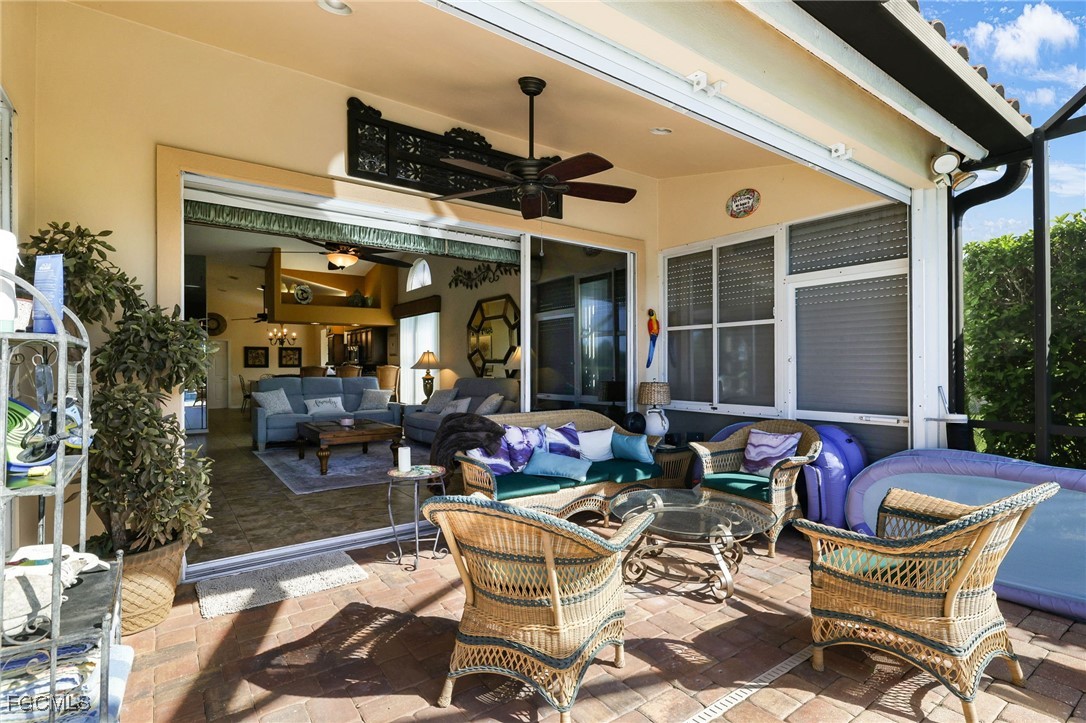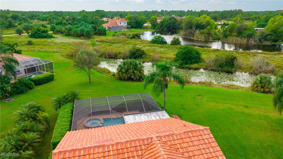 BRAND NEW TILE ROOF! Welcome to your 100% move-in ready, quiet, private retreat in Aston Greens, crafted by the renowned Arthur Rutenberg Homes with COUNTY WATER AND SEWER. Aston Greens is in the Mirror Lakes area of Lehigh Acres, located within minutes of shopping, dining, and major access points to Fort Myers. This well-maintained three bedroom, two bathroom home comes fully furnished and includes a host of premium upgrades and features. Tile and luxury vinyl floors adorn all living areas in this open concept, split bedroom layout. The master suite offers plenty of space, his and hers closets, dual sinks, a separate tub and shower, and large sliding glass doors leading to the pool area. Outside you'll find two large covered lanai spaces, hurricane rolldown shutters for ease of use and peace of mind, a heated pool and spa, and a paver pool deck overlooking the peaceful lake. Experience ultimate peace, quiet, and privacy on this oversized pie-shape lot with added separation on both sides. Aston Greens offers a quaint community feel, large lot sizes, underground utilities, and gorgeous views in a central south Lehigh Acres location.