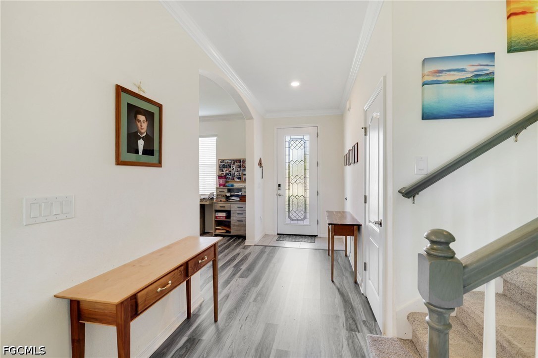 Incredible location near beaches, with no flooding! Experience tranquil living in 9732 Mirada Blvd, a spacious "Amalfi" floor plan with 4 bedrooms plus a den, 3 full bathrooms, and a loft in the quiet gated community of Mirada. Positioned on a massive pie-shape corner lot, this home includes a driveway with space for 5+ cars, room for a private pool and spa, and the home is set back from all the others, offering ultimate privacy. Downstairs you'll find a bedroom, bathroom, den/flex room, and large great room centered around a spectacular island kitchen. Upstairs is a loft, two bedrooms with walk-in closets, a shared bathroom with dual sinks and the toilet and shower/tub separated by a door, and the luxurious master suite with large windows overlooking the preserve, walk-in closet, and a bathroom with dual sinks and a separate walk-in shower and tub. Outside, the home offers a massive 24'x9' covered and screened lanai with no view of any neighbors or roads, and plenty of room for a fence and/or a custom pool and spa. In hurricanes, Mirada rarely loses power as it shares a grid with the neighboring Health Park Hospital. No flooding here in any recent storms, and a discounted flood insurance policy is available to be transferred to the new owner. Mirada is located just ten minutes from Fort Myers Beach and Sanibel Island, and within five minutes of endless shops, restaurants, and entertainment destinations. Do not let this opportunity pass you by, schedule your private showing today.
